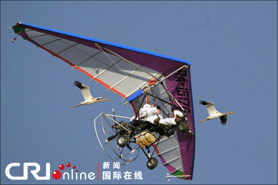 普京駕駛滑翔機引領鶴群遷徙(國際在線/CFP)