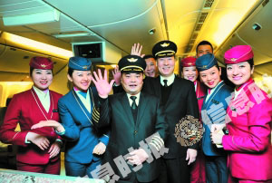 2012年南航最后一個(gè)航班飛機(jī)落地后,機(jī)組人員合影留念。信息時(shí)報(bào)記者 蕭嘉寧 攝