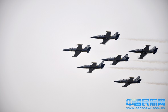 歐洲“百年靈”噴氣機(jī)特技飛行表演隊(duì)是全球唯一的私家特技飛行表演隊(duì),隊(duì)員由清一色的法國(guó)空軍和“法蘭西巡邏兵”特技飛行表演隊(duì)的退役飛行員組成,平均每年都會(huì)在歐洲各大航展、F1賽事和其他體育賽事上進(jìn)行50多場(chǎng)的表演,獲得過國(guó)際航聯(lián)飛行大賽民機(jī)編隊(duì)表演組冠軍。該表演隊(duì)曾在去年舉辦的第九屆中國(guó)航展上進(jìn)行了精彩的中國(guó)首秀,驚險(xiǎn)刺激的表演讓中外觀眾嘆為觀止。