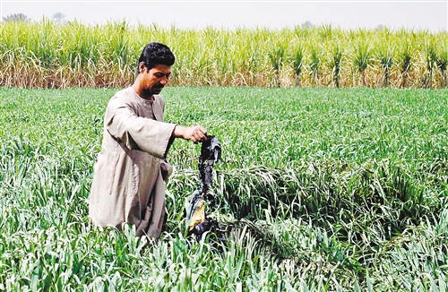 2月26日,在盧克索附近,救援人員在發(fā)生熱氣球爆炸的事故現(xiàn)場查看熱氣球殘骸。