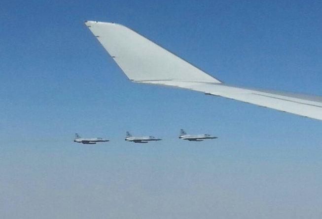 訪問巴基斯坦的中國總理李克強乘坐的專機22日進入巴領(lǐng)空后,巴空軍派出6架“梟龍”戰(zhàn)機進行了編隊護航。在很多情況下,為到訪專機護航有著很現(xiàn)實的安全需求。不過,對大多數(shù)國家而言,在和平時期派出戰(zhàn)斗機為外國首腦專機護航,則更多是一種禮遇,而護航戰(zhàn)機的數(shù)量體現(xiàn)著兩國關(guān)系的親密程度。