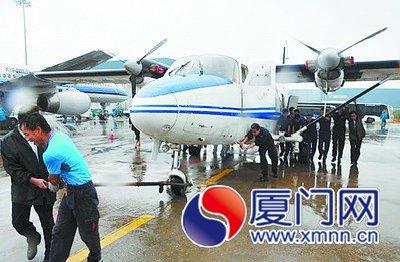 受“西馬侖”影響,這架固定翼飛機(jī)被轉(zhuǎn)移至廈門機(jī)場(chǎng)附近的太古機(jī)庫(kù),待風(fēng)雨過后,再回到停機(jī)位值班待命。從太古機(jī)庫(kù)到停機(jī)位有一段一百多米的斜坡,因?yàn)闋恳噳牧,只好調(diào)來20名小伙子人工“推”飛機(jī)。(記者 曾嫣艷 通訊員 劉匯)