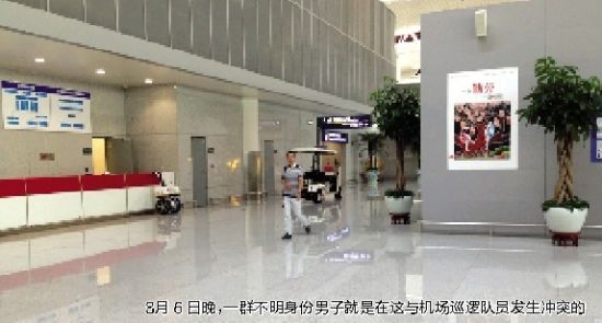 周先生目睹了事件全過程。 “當(dāng)時(shí)這幫人進(jìn)來后,根本不顧周遭環(huán)境,在里面點(diǎn)煙就抽,煙蒂隨處甩,態(tài)度囂張得很。 ”據(jù)他介紹,巡邏隊(duì)員很快趕過來,要求吸煙者立即掐滅煙頭,“結(jié)果抽煙的一方不愿意,雙方很快就起了爭執(zhí),后來,雙方都有很多人圍了過來。之后,就看見幾名男子,開始?xì)、推搡機(jī)場巡邏隊(duì)員。 ”