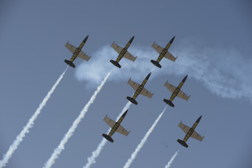 在為期3天的克拉瑪依航空旅游節(jié)中,百余架各類航空飛行器為新疆地區(qū)的觀眾帶來了視覺盛宴。敢問哪個(gè)機(jī)隊(duì)的精彩表演讓雨后的克拉瑪依機(jī)場(chǎng)熱鬧非凡,是不遠(yuǎn)千里飛行4天抵達(dá)中國大西北的瑞士“百年靈”噴氣機(jī)隊(duì)。敢問哪個(gè)跳傘隊(duì)的花樣跳傘讓天空變的色彩繽紛,是與藍(lán)天共舞的中國人民解放軍“八一”跳傘隊(duì)。還有動(dòng)力傘、動(dòng)力三角翼、航模、輕型飛機(jī)等航空飛行器的表演和靜態(tài)展示讓觀眾零距離貼近飛機(jī),感受各型飛機(jī)的豪氣。