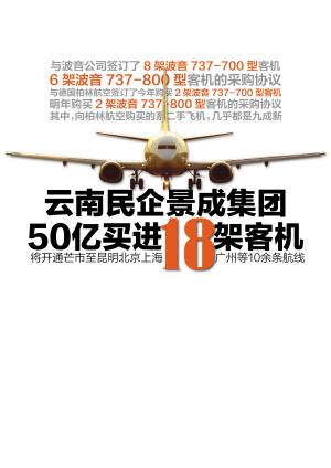 上周末,景成集團(tuán)正在籌建的全資子公司——云南瑞麗航空公司與美國波音公司、德國柏林航空公司簽訂總計18架客機(jī)的采購協(xié)議。在大手筆購進(jìn)飛機(jī)的背后,一個由30多人組成的籌備團(tuán)隊在一月前悄然入駐昆明,并緊鑼密鼓地開展籌建工作。