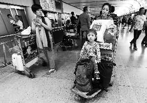 ▲ 9月15日,“海娜號”滯留游客抵達首都國際機場2號航站樓。 新華社記者 張宇攝