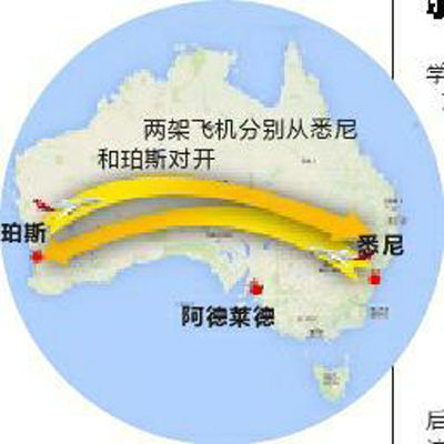 20日12時(shí),兩架分別從澳大利亞悉尼和珀斯市對(duì)開的A330空客正好經(jīng)過阿德萊德以西19公里的上空。