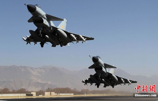1月31日,雪域高原陽光明媚,萬里無云。駐藏空軍某軍用機場戰(zhàn)鷹列陣,車輛奔流,戰(zhàn)士們在緊張有序中拉開龍年新春首飛的序幕。圖為10時30分戰(zhàn)鷹準時編隊起飛。中新社發(fā) 劉應華 攝 圖片來源:CNSPHOTO
