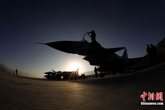 1月31日,雪域高原陽光明媚,萬里無云。駐藏空軍某軍用機場戰(zhàn)鷹列陣,車輛奔流,戰(zhàn)士們在緊張有序中拉開龍年新春首飛的序幕。圖為晨曦初露,機務人員正在緊張準備戰(zhàn)鷹。中新社發(fā) 劉應華 攝 圖片來源:CNSPHOTO