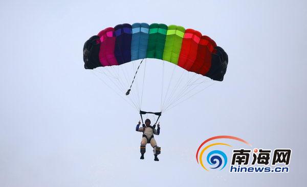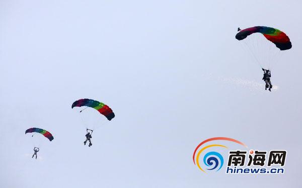 跳傘隊(duì)員在空中做表演(南海網(wǎng)記者張茂攝)