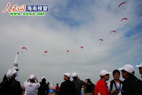 21日上午8點左右,經(jīng)過一天的休整,2011環(huán)海南島飛行拉力賽東方段在東方市邊貿(mào)城正式開幕。比起前幾日的大風天氣,今天的風速明顯減弱,在?谖茨芘c廣大市民和游客見面的熱氣球、動力傘、動力三角翼今天也終于如愿升空,在東方的碧海藍天間盡情的翱翔。大批東方市民趕到現(xiàn)場,一幕幕精彩的飛行表演引得現(xiàn)場尖叫連連、掌聲不斷。