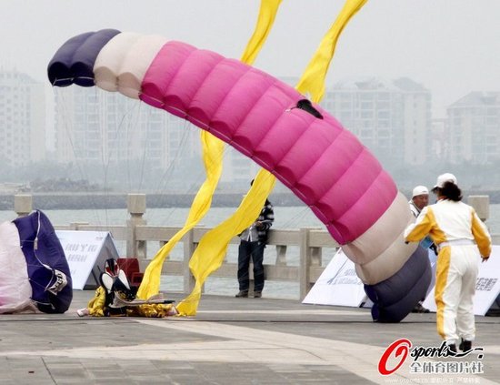 2011年12月17日,2011環(huán)海南飛行拉力賽在海口開幕,80余具航空器將競秀?跒。在開幕式上,一名女跳傘運動員表演落地時降速太快導致受傷被送醫(yī)院。