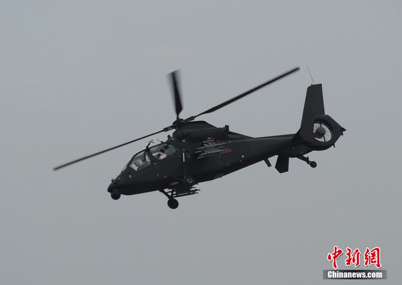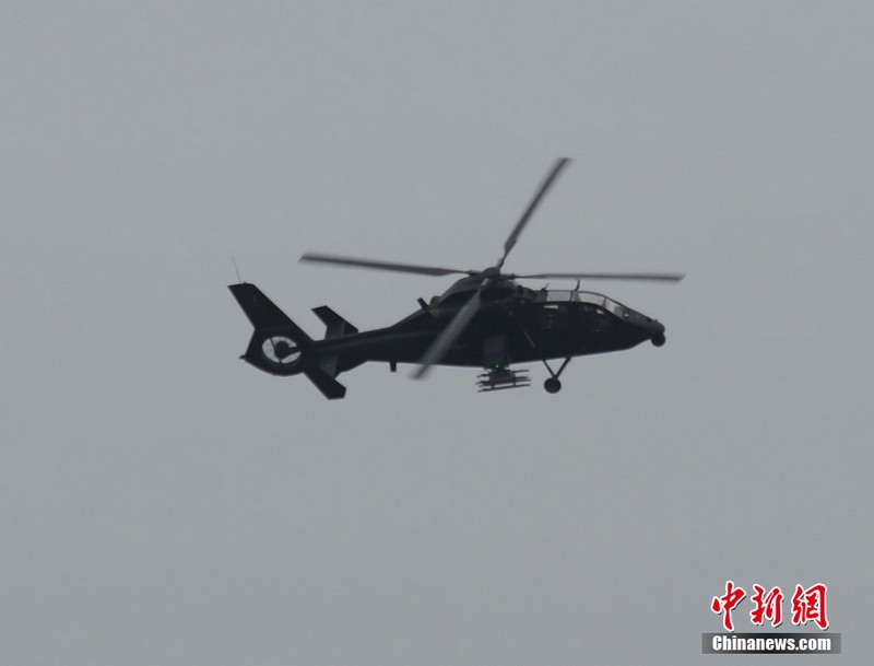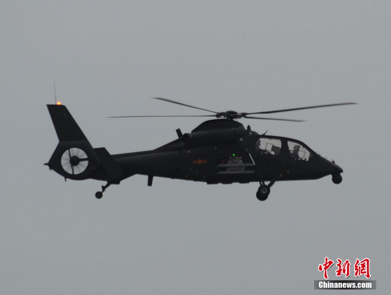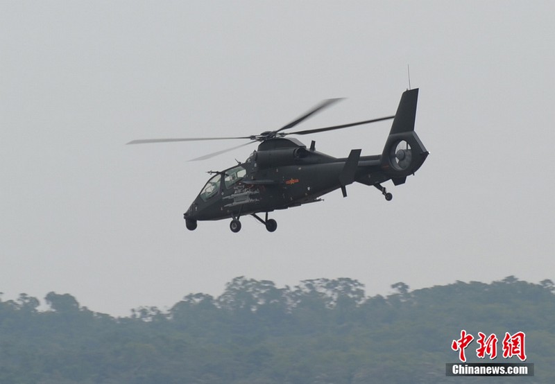 中新網(wǎng)珠海11月11日電(陳海峰) 中國陸航直19武裝直升機11日在珠海航展上空進行了精彩的飛行表演。