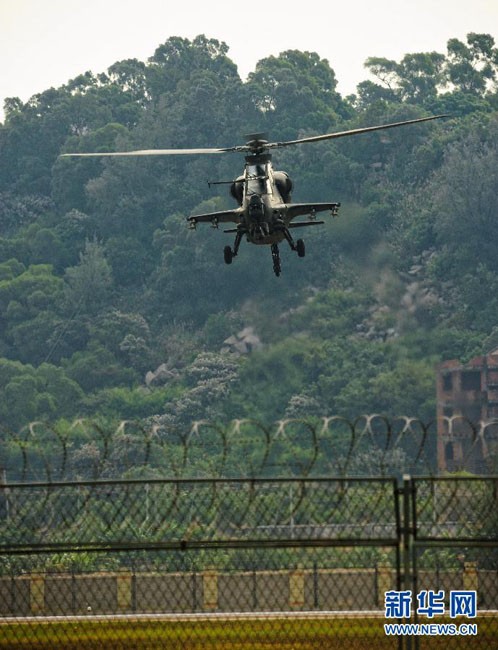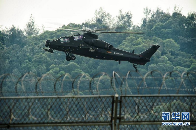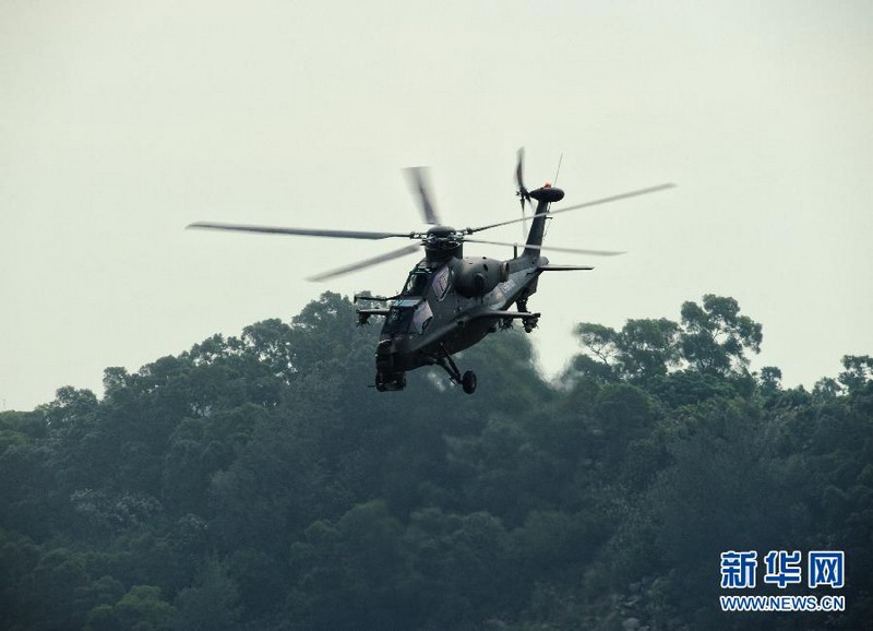 2012年11月11日,國產(chǎn)武直10武裝直升機在珠海三灶機場進行飛行訓(xùn)練。當(dāng)日,我國自主研制生產(chǎn)的武直10武裝直升機在珠海三灶機場進行了約20分鐘的適應(yīng)性飛行訓(xùn)練,做出倒飛、萊維斯曼機動、高速大角度俯沖、低空小半徑盤旋等動作,展現(xiàn)出其優(yōu)異性能,引來航展現(xiàn)場觀眾頻頻喝彩。楊光 攝 圖片來源:新華網(wǎng)