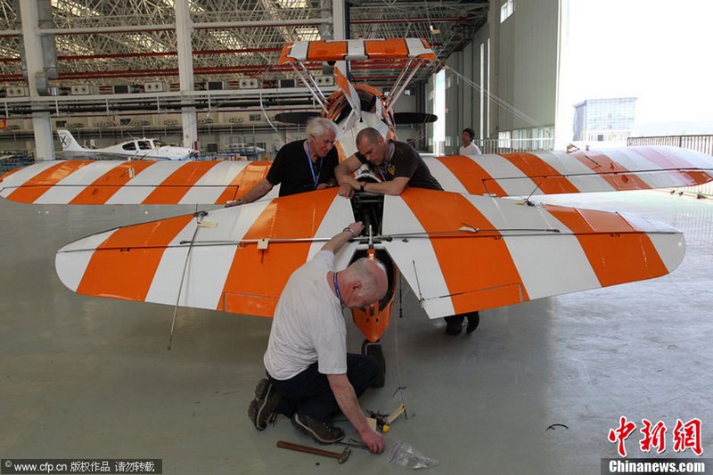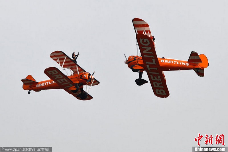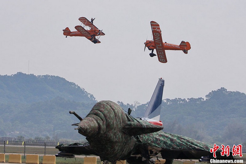 承辦中國(guó)航展的珠海航展有限公司副總經(jīng)理?xiàng)钯t剛介紹,第九屆中國(guó)珠海航展有來(lái)自39個(gè)國(guó)家和地區(qū)近650家中外航空航天廠(chǎng)商參展,根據(jù)最新的參展飛機(jī)清單,本屆航展上的各類(lèi)飛行器實(shí)物將為114架,包括殲擊機(jī)、直升機(jī)、客機(jī)、公務(wù)機(jī)、水陸兩棲多用途飛機(jī)等,有近50架將動(dòng)態(tài)飛行展示;飛行表演將集中在 11月16日-18日。圖為一臺(tái)被包裹得嚴(yán)嚴(yán)實(shí)實(shí)的“棕子機(jī)”,其上方則是“百年靈”機(jī)翼行走飛行特技表演隊(duì)在進(jìn)行訓(xùn)練。