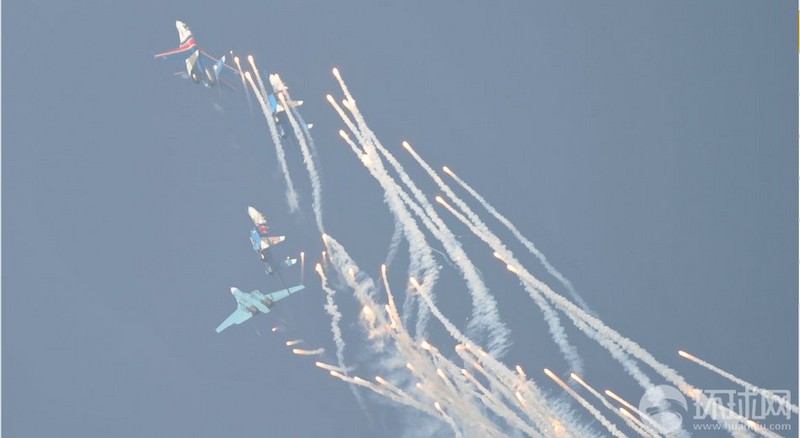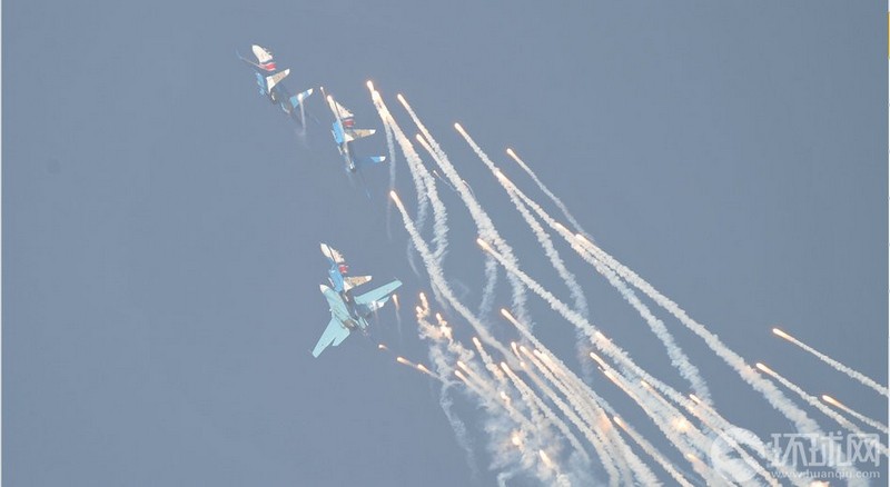 【環(huán)球網(wǎng)赴珠海航展特派報(bào)道組綜合報(bào)道】第九屆中國(guó)國(guó)際航空航天博覽會(huì)(珠海航展2012)將于11月13日-18日在廣東省珠海市金灣區(qū)三灶鎮(zhèn)隆重舉行。12日,“俄羅斯勇士”飛行表演隊(duì)舉行了本屆珠海航展正式開(kāi)幕前的預(yù)演。