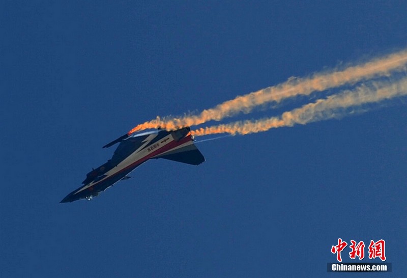 中國(guó)空軍八一飛行表演隊(duì)上演了“向上開花”、“雙機(jī)對(duì)沖”、“小半徑轉(zhuǎn)圈”等精彩動(dòng)作。記者曾多次觀看過八一飛行表演隊(duì)的表演,而這次是最精彩的一次。