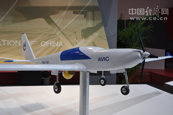 中航工業(yè)比例為1:6的鷂鷹無人機(jī)模型,該機(jī)型將亮相本屆珠海航展 中國經(jīng)濟(jì)網(wǎng)記者 段丹峰 攝