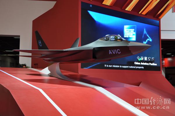中航工業(yè)展館里的比例為1:4先進(jìn)戰(zhàn)斗機(jī)概念機(jī) 中國經(jīng)濟(jì)網(wǎng)記者 段丹峰 攝