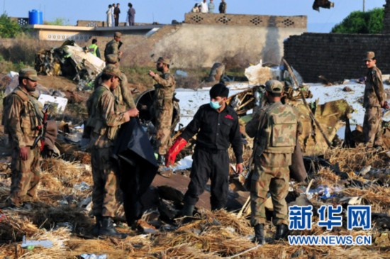 4月21日,軍隊及救援人員在巴基斯坦伊斯蘭堡的空難現(xiàn)場工作。巴基斯坦民航管理局負責人納迪姆·尤薩夫扎伊21日表示,有關(guān)對20日晚在伊斯蘭堡附近發(fā)生的空難事件的調(diào)查將不會持續(xù)很長時間。巴基斯坦博雅航空公司一架客機20日在伊斯蘭堡附近墜毀,機上127名乘客和機組人員全部遇難。新華社發(fā)(艾哈邁德·卡邁勒攝)