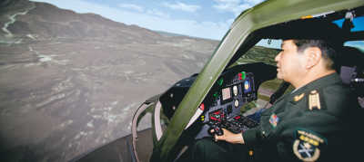 開直升機(jī)不是每個(gè)人都有的體驗(yàn),也未必每人都敢開,模擬飛行則解決了這些問題。在模擬訓(xùn)練室里,模擬飛行教研室主任、特級(jí)飛行員黃殿義,帶著本報(bào)記者在Z9WA/Z型模擬直升機(jī)里,體驗(yàn)了一把虛擬飛行。球形3D屏幕讓人有身臨其境之感,一會(huì)掠過高山,一會(huì)飛過大海!澳M機(jī)沒有危險(xiǎn),能消除恐懼心理,多開模擬機(jī),便于以后開實(shí)裝機(jī)!秉S殿義說。