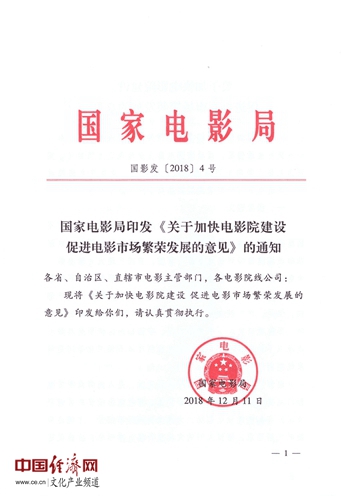 經(jīng)濟(jì)日?qǐng)?bào)-中國(guó)經(jīng)濟(jì)網(wǎng)北京12月14日訊 近日,國(guó)家電影局印發(fā)《關(guān)于加快電影院建設(shè)促進(jìn)電影市場(chǎng)繁榮發(fā)展的意見(jiàn)》的通知,全文如下