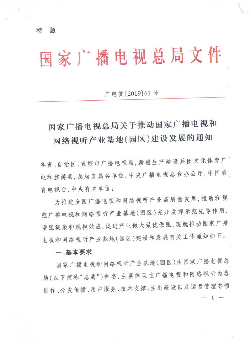 國家廣播電視總局關于推動國家廣播電視和網絡視聽產業(yè)基地(園區(qū))建設發(fā)展的通知