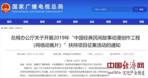 總局辦公廳關(guān)于開(kāi)展2019年“中國(guó)經(jīng)典民間故事動(dòng)漫創(chuàng)作工程(網(wǎng)絡(luò)動(dòng)畫(huà)片)”扶持項(xiàng)目征集活動(dòng)的通知