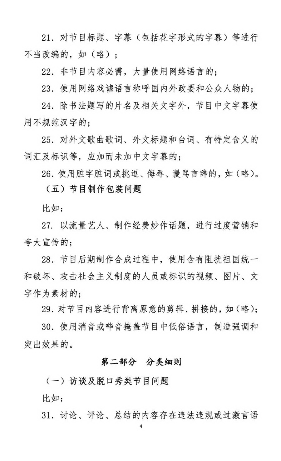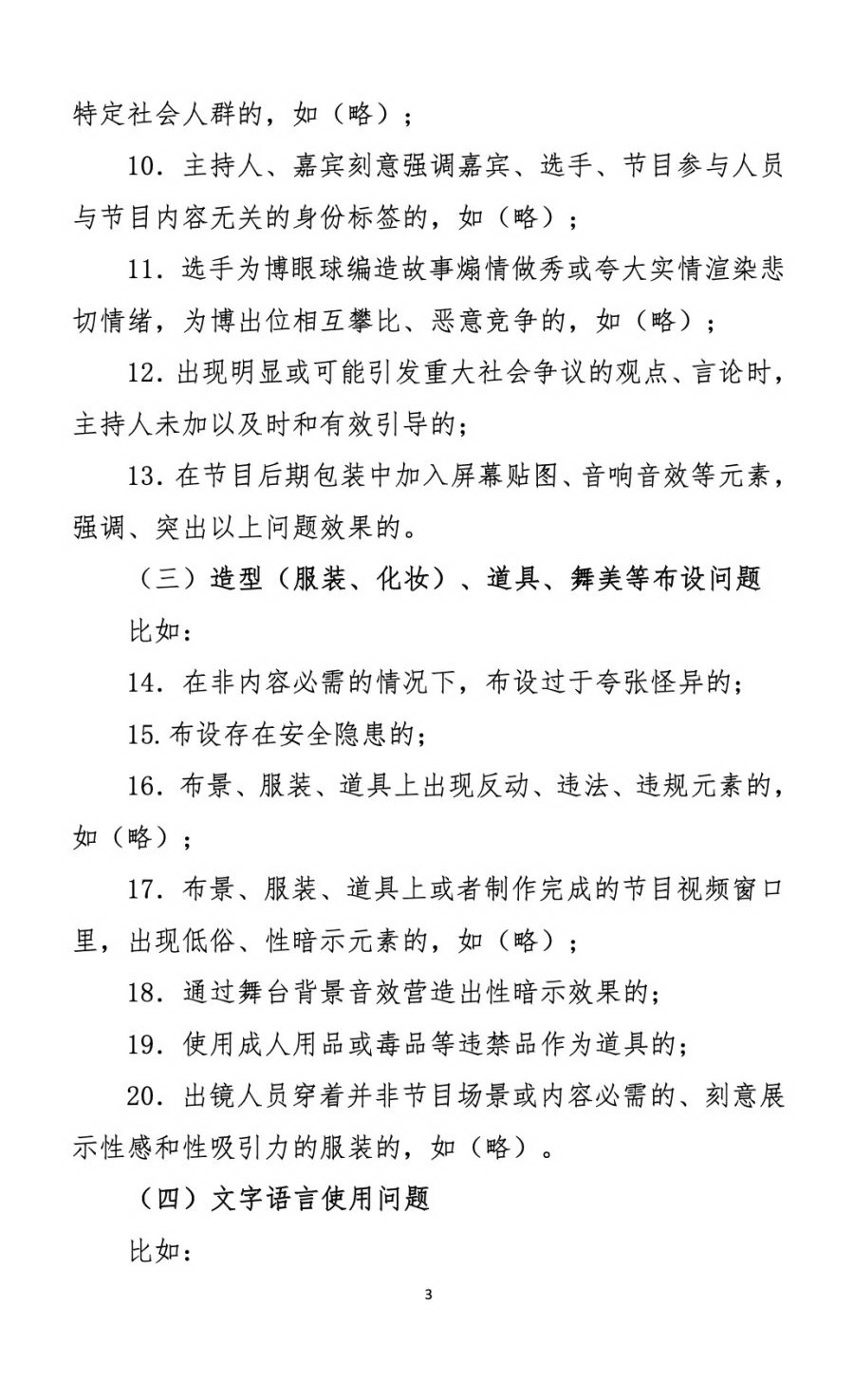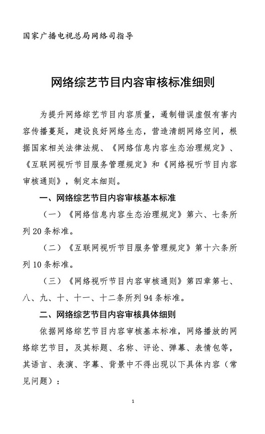 以下為《網(wǎng)絡(luò)綜藝節(jié)目內(nèi)容審核標(biāo)準(zhǔn)細(xì)則》全文: