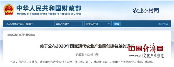 經(jīng)濟日報-中國經(jīng)濟網(wǎng)北京5月7日訊 5月6日,農(nóng)業(yè)農(nóng)村部、財政部公布2020年國家現(xiàn)代農(nóng)業(yè)產(chǎn)業(yè)園創(chuàng)建名單。經(jīng)遴選,批準(zhǔn)北京市平谷區(qū)等31個現(xiàn)代農(nóng)業(yè)產(chǎn)業(yè)園創(chuàng)建國家現(xiàn)代農(nóng)業(yè)產(chǎn)業(yè)園;江蘇省蘇州市吳江區(qū)等8個省級現(xiàn)代農(nóng)業(yè)產(chǎn)業(yè)園納入國家現(xiàn)代農(nóng)業(yè)產(chǎn)業(yè)園創(chuàng)建管理體系。