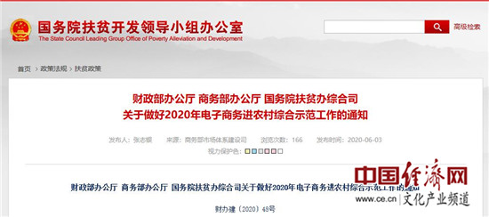 財政部辦公廳 商務(wù)部辦公廳 國務(wù)院扶貧辦綜合司關(guān)于做好2020年電子商務(wù)進(jìn)農(nóng)村綜合示范工作的通知
