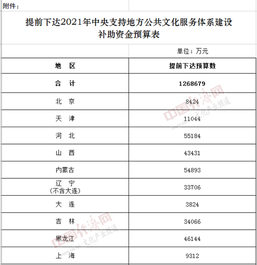 附件:提前下達2021年中央支持地方公共文化服務體系建設補助資金預算表