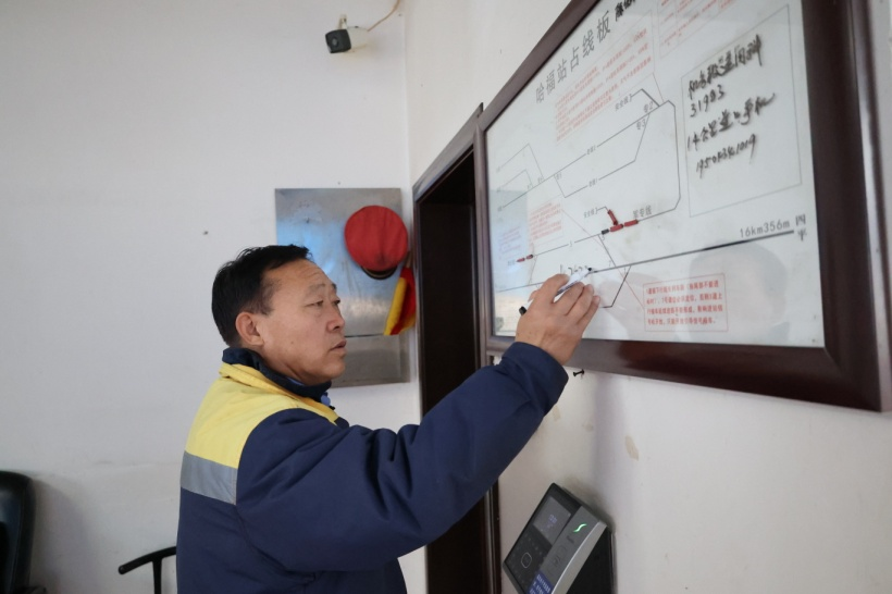 閆國會填寫站線板準備接車。