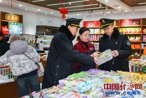 疾控中心工作人員在天津西站內(nèi)超市對(duì)售賣(mài)食品進(jìn)行監(jiān)督查看。楊寶森/攝