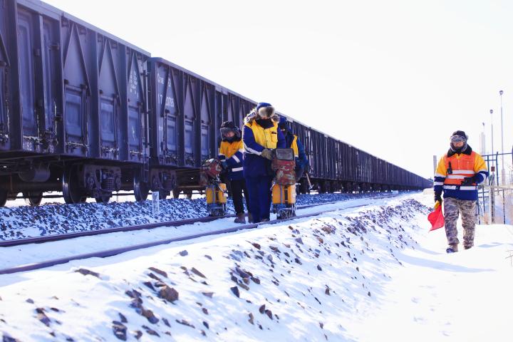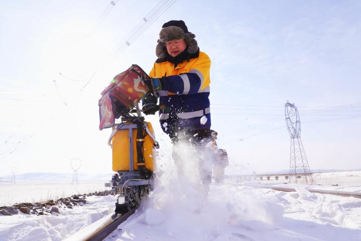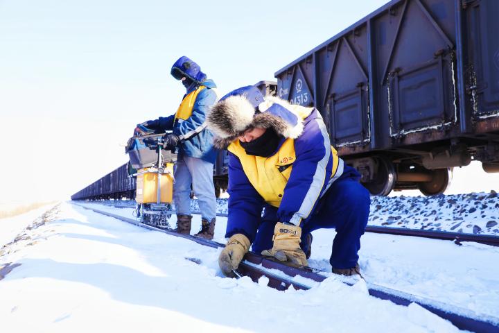 作業(yè)中,他們采用“儀器+手工”雙重檢查:儀器檢測內(nèi)部傷損,手工用小鏡子、小錘敲擊軌面,排查外部隱患。中午時分,防護員呂雪冬通過對講機報告:“天窗時間過半,抓緊進度!” “鋼軌醫(yī)生”們加快步伐,在4個小時的“天窗”內(nèi)完成7公里線路檢查。王壯抹去睫毛上的冰碴:“天窗點寶貴,歇息會耽誤任務(wù),安全暢通是頭等大事。”