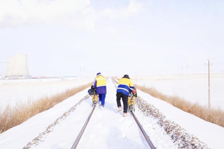 12時整天窗結(jié)束,“鋼軌醫(yī)生”們安全下道,他們穿著厚重的大衣,艱難的在積雪中行走,早已滿身大汗,鉆進脖領(lǐng)、袖口、鞋里的雪花卻化了凍、凍了化,刺骨的寒意依舊沒有阻擋住他們的腳步。班長郭夢楠望著遠去的煤炭列車,聲音堅定:“春運即將結(jié)束,但鐵路人不能松懈,我們堅守崗位,確保每一趟列車的平安抵達,萬家燈火就有了溫暖。”