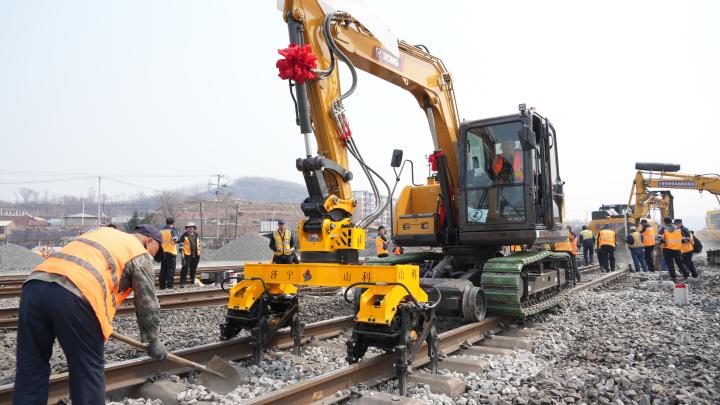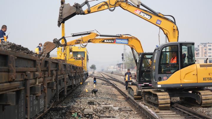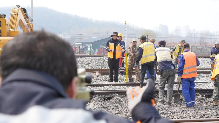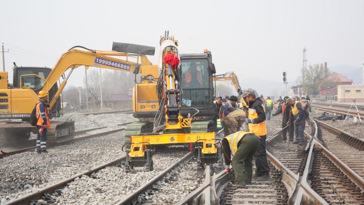 4月14日11時(shí)10分,在沈丹上行線石橋子站內(nèi)22號(hào)道岔旁人頭攢動(dòng),機(jī)械轟鳴,循聲望去,一臺(tái)道岔清篩鉤機(jī)、一臺(tái)搗固鉤機(jī)以及三臺(tái)配備精細(xì)篩網(wǎng)的鉤機(jī)已按預(yù)定方案就位,與此同時(shí),來(lái)自丹東工務(wù)段石橋子線路車間70余名干部職工身著黃色工作服,手拿撬棍、鐵鍬,在線路兩旁排隊(duì)等候施工命令的下達(dá),一場(chǎng)以機(jī)械為主力、人工作業(yè)精準(zhǔn)配合的道岔機(jī)械清篩施工即將有序展開。