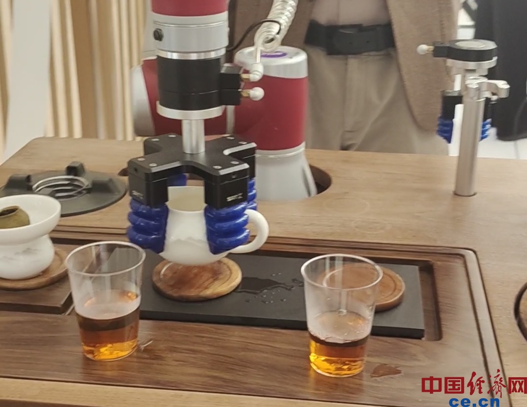 茶藝機器人可模擬煮茶大師手法,提供便捷、地道的用茶體驗。中國經濟網記者 朱曉倩/攝