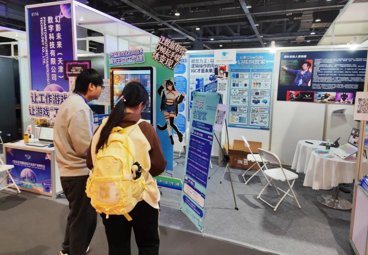 展館內(nèi),幻影未來(lái)(天津)數(shù)字科技有限公司的展位上顯示著像素風(fēng)格的辦公室界面,吸引著觀眾駐足?!拔覀兪褂脭?shù)字人和像素風(fēng)辦公室界面作為前端,讓用戶和Agent互動(dòng)更為直接簡(jiǎn)單,真正實(shí)現(xiàn)‘工作變得像游戲一樣簡(jiǎn)單’。”董錦超介紹,幻影未來(lái)是一家游戲與動(dòng)畫垂類的技術(shù)型“OPC”,目前專注于AI Agent智能體技術(shù)自動(dòng)化應(yīng)用,包含影視動(dòng)畫、游戲交互、泛娛樂等,今年主打的核心產(chǎn)品是面向C端和小B端的ClawSolo項(xiàng)目。董錦超透露,除該項(xiàng)目外,他們深耕游戲和動(dòng)畫垂類,與一些大廠達(dá)成長(zhǎng)期合作開發(fā),與AI短劇平臺(tái)做聯(lián)合出品和制片任務(wù)。