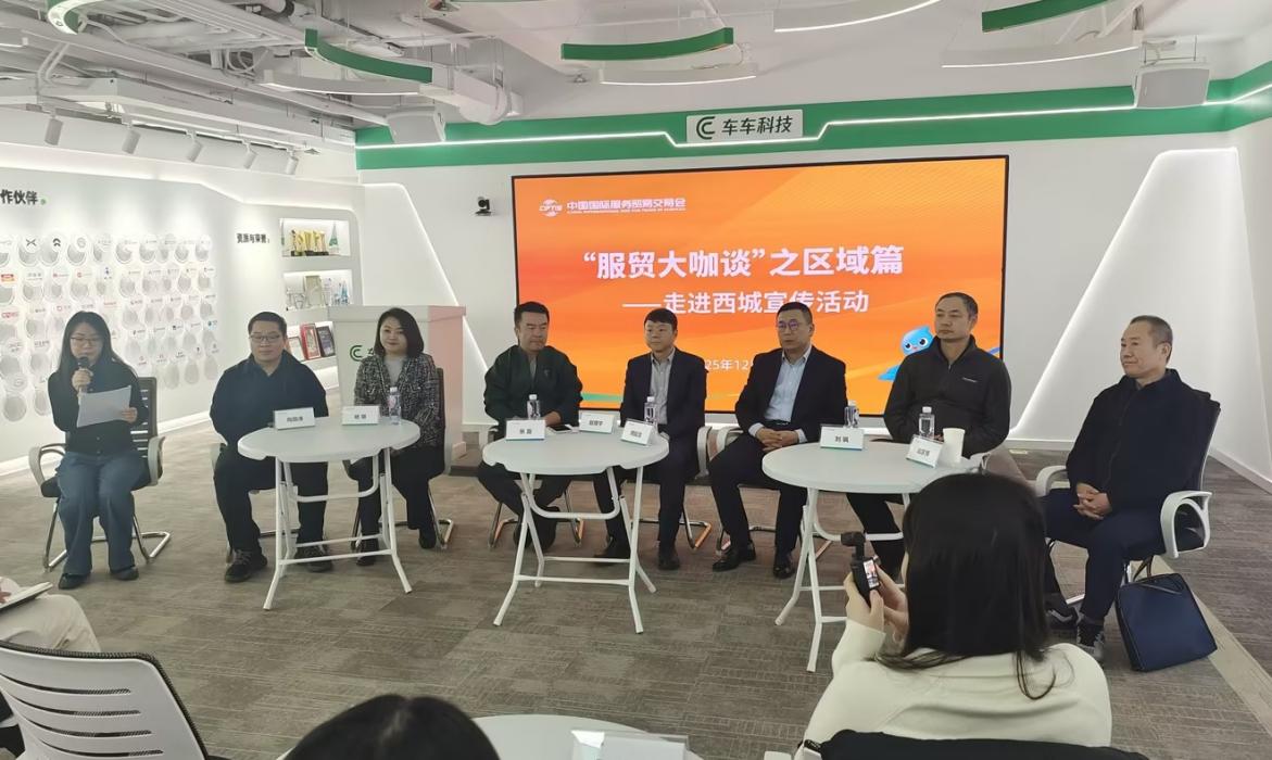中國國際服務(wù)貿(mào)易交易會“服貿(mào)大咖談”之區(qū)域篇——走進西城宣傳活動12月16日在北京西城車車科技集團舉行。圖為活動現(xiàn)場。中國經(jīng)濟網(wǎng)記者 朱曉倩/攝