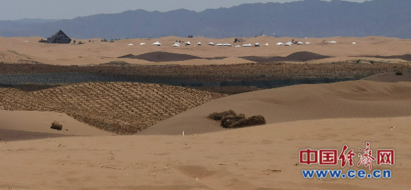 點(diǎn)沙成金,綠富同興。唐希明還積極引導(dǎo)當(dāng)?shù)厝朔N植沙蔥和經(jīng)濟(jì)林?!吧衬顷懙厣鷳B(tài)系統(tǒng)的重要組成部分,在防沙治沙的基礎(chǔ)上,我們更要學(xué)會(huì)利用沙漠資源,大力發(fā)展沙漠旅游、沙漠牧場(chǎng)、光伏發(fā)電等產(chǎn)業(yè),形成人沙和諧、沙為人用的良好局面?!痹谔葡C骺磥?,向沙漠要效益的前提,首先是要通過鎖邊治理使得周圍形成一道綠色的屏障,從而擋住風(fēng)沙。有了好的生態(tài)環(huán)境,才會(huì)有更多產(chǎn)業(yè)發(fā)展的可能。沙坡頭區(qū)旅游產(chǎn)業(yè)的快速發(fā)展就是中衛(wèi)治沙成績(jī)的有力見證。