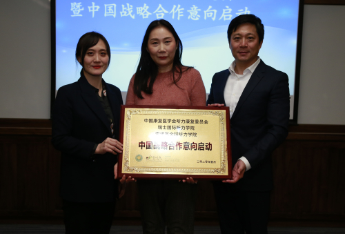 索諾瓦聽(tīng)力集團(tuán)中國(guó)區(qū)董事、總經(jīng)理張衛(wèi)(左)與中國(guó)康復(fù)醫(yī)學(xué)會(huì)聽(tīng)力康復(fù)專業(yè)委員會(huì)秘書長(zhǎng)王立群(中)等共同啟動(dòng)中國(guó)戰(zhàn)略合作意向