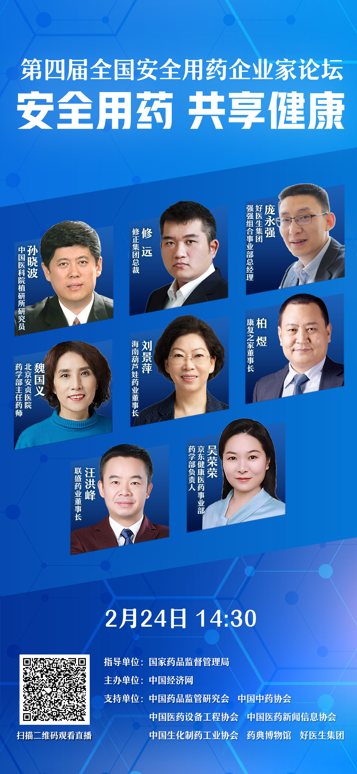 中國(guó)經(jīng)濟(jì)網(wǎng)2月23日訊(記者 郭文培)由國(guó)家藥品監(jiān)督管理局指導(dǎo),中國(guó)經(jīng)濟(jì)網(wǎng)主辦的“第四屆全國(guó)安全用藥企業(yè)家論壇”將于2月24日在北京召開(kāi)。此次論壇是“全國(guó)安全用藥月”系列活動(dòng)的組成部分,論壇主題為“安全用藥共享健康”。