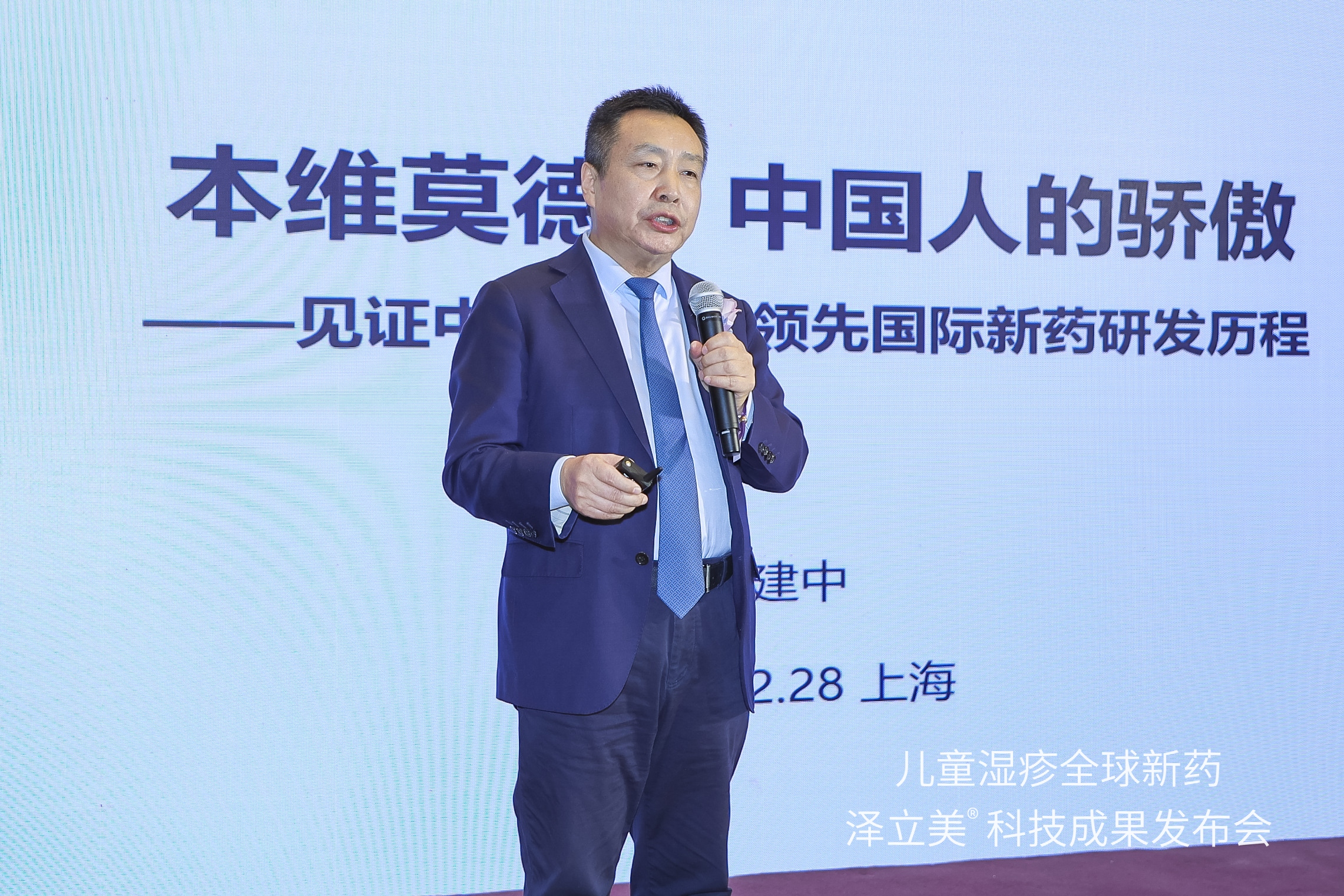 12月28日,兒童濕疹全球新藥澤立美科技成果發(fā)布會(huì)在上海舉行。圖為北京大學(xué)人民醫(yī)院皮膚科張建中教授作主題報(bào)告。