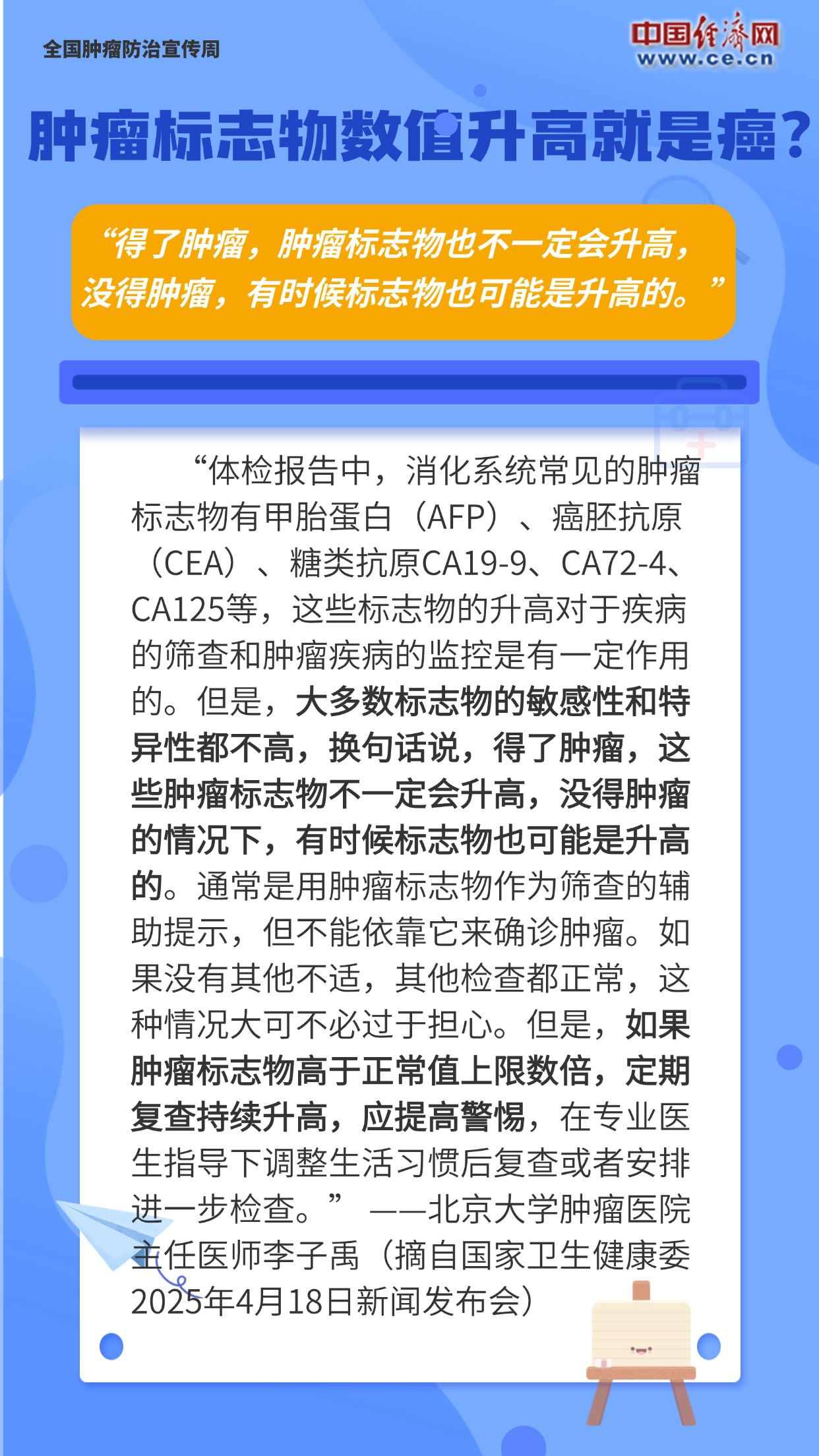 全國腫瘤防治宣傳周|腫瘤標志物數(shù)值升高就是癌?