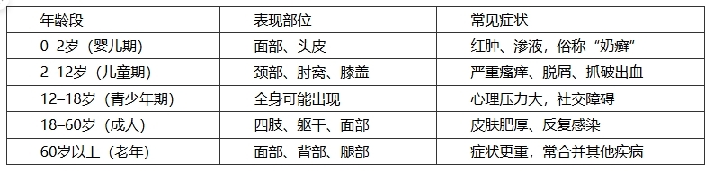 張建中教授詳細(xì)解析了特應(yīng)性皮炎的5個(gè)年齡段表現(xiàn):