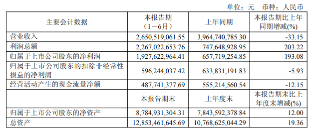 中國經(jīng)濟(jì)網(wǎng)北京8月20日訊(記者 郭文培)日前,達(dá)仁堂披露2025年半年度報(bào)告。報(bào)告期內(nèi),公司實(shí)現(xiàn)營業(yè)收入26.51億元,同比下降33.15%;歸屬于上市公司股東的凈利潤為19.28億元,同比增長193.08%。