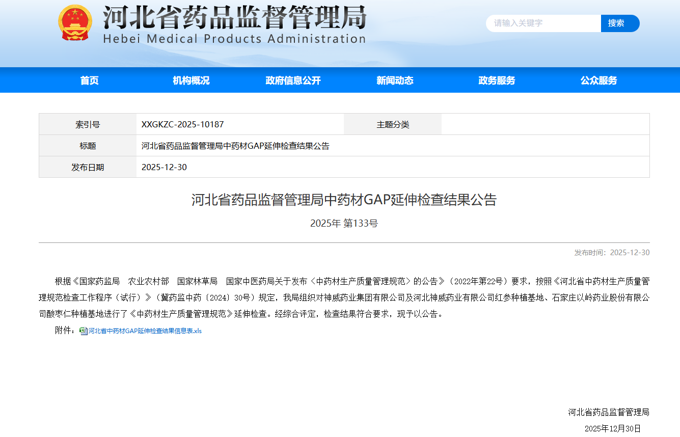 河北省藥品監(jiān)督管理局日前發(fā)布《河北省藥品監(jiān)督管理局中藥材GAP延伸檢查結(jié)果公告》,以嶺藥業(yè)酸棗仁種植基地通過河北省藥監(jiān)局組織的GAP延伸檢查,綜合評(píng)定符合要求。這是全國第一個(gè)通過GAP延伸檢查的酸棗仁基地。