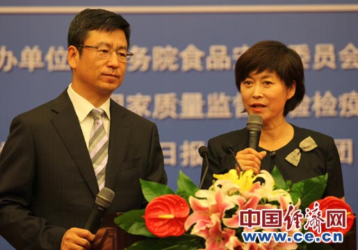 6月11日至17日被確定為今年的全國食品安全宣傳周。宣傳周主題為“共建誠信家園 同鑄食品安全”。全國食品安全宣傳周啟動(dòng)儀式由國務(wù)院食品安全委員會(huì)辦公室、工業(yè)和信息化部、農(nóng)業(yè)部、商務(wù)部、衛(wèi)生部、國家工商總局、國家質(zhì)檢總局、國家糧食局、國家食品藥品監(jiān)管局、中國科協(xié)共同主辦,經(jīng)濟(jì)日報(bào)社、中糧集團(tuán)承辦,中國經(jīng)濟(jì)網(wǎng)執(zhí)行承辦。圖為食品安全公益形象大使、中央電視臺(tái)主持人白巖松和敬一丹主持召開第四屆中國食品安全論壇主論壇。