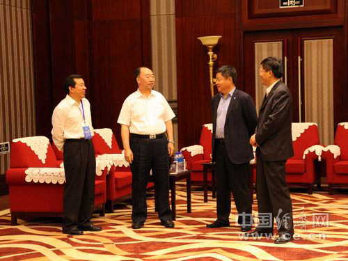 2013年全國食品安全宣傳周啟動(dòng)儀式暨第五屆中國食品安全論壇6月17日在北京舉辦,今年主題為“社會(huì)共治 同心攜手維護(hù)食品安全”。圖為論壇嘉賓中糧集團(tuán)董事長寧高寧(右二)與經(jīng)濟(jì)日報(bào)社社長徐如俊,經(jīng)濟(jì)日報(bào)社副總編輯丁士,中國經(jīng)濟(jì)網(wǎng)總裁王旭東交流。 中國經(jīng)濟(jì)網(wǎng) 王耀峰/攝